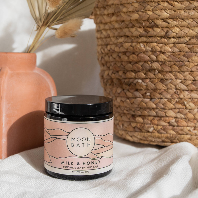 Enhance your bath ritual with these sea salt bath scrubs from Moon Bath. Infused with coconut milk and honey, it leaves your skin silky soft and turns your bath into a therapeutic experience with the grounding aroma of frankincense, lavender, and bergamot essential oil.