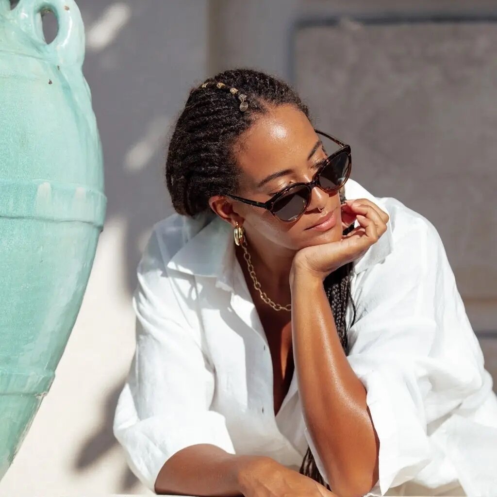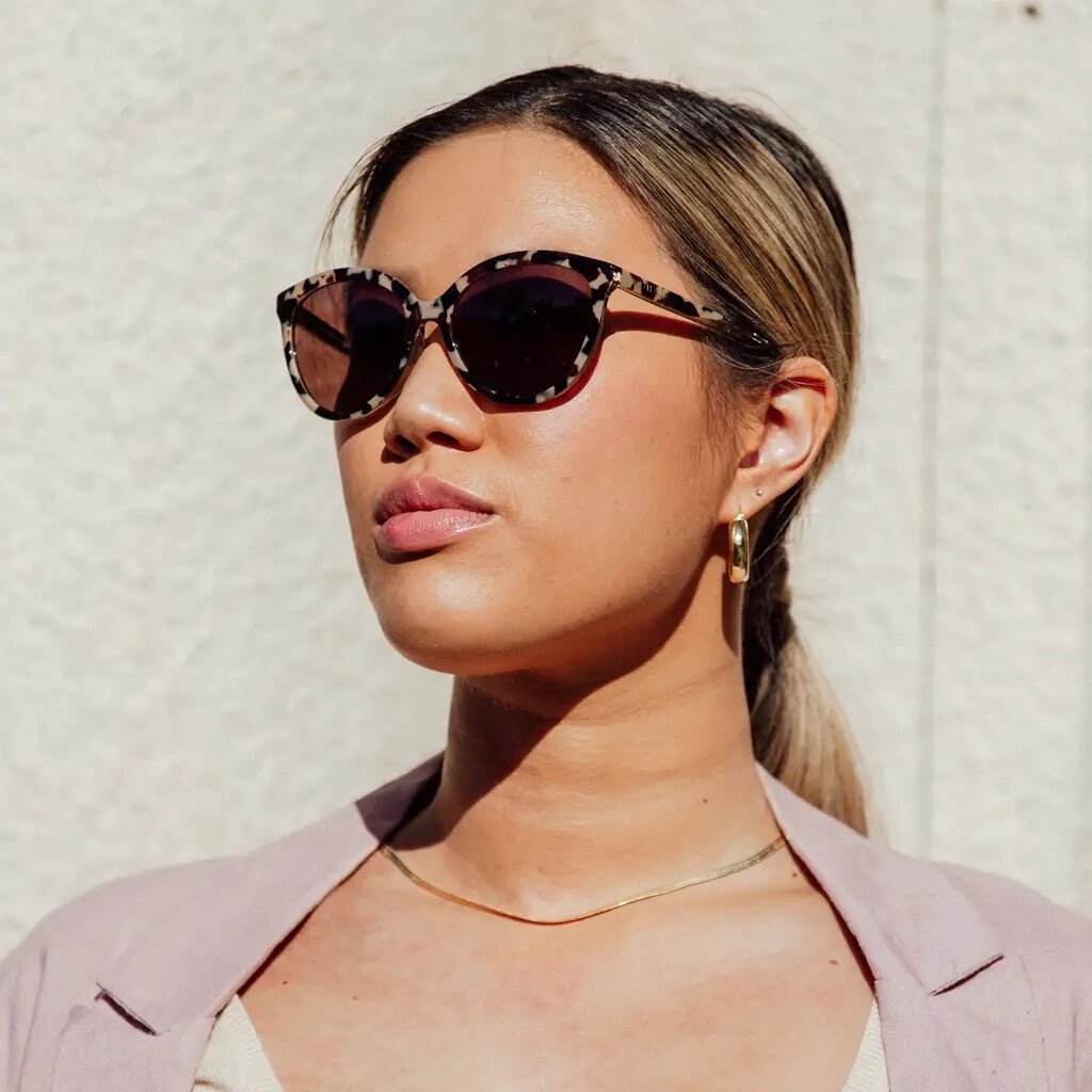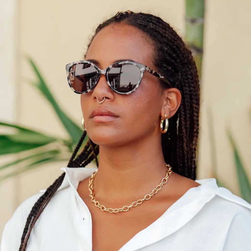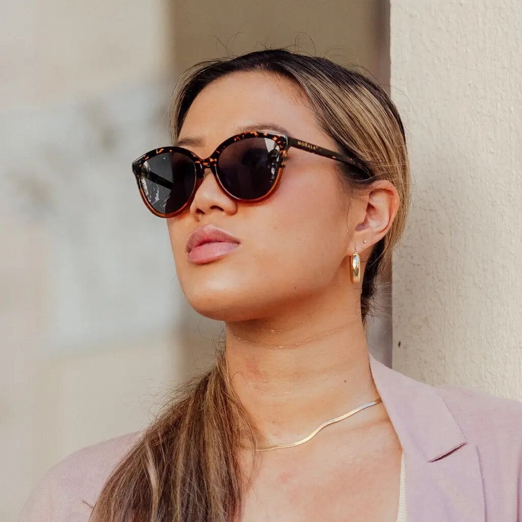 These thin, feminine, and slightly cat-eyed sunglasses from Mohala are perfect for an everyday glamorous look. The frames transition to an amber ombre and are perfectly sized for oval, square and heart-shaped faces.