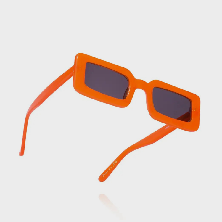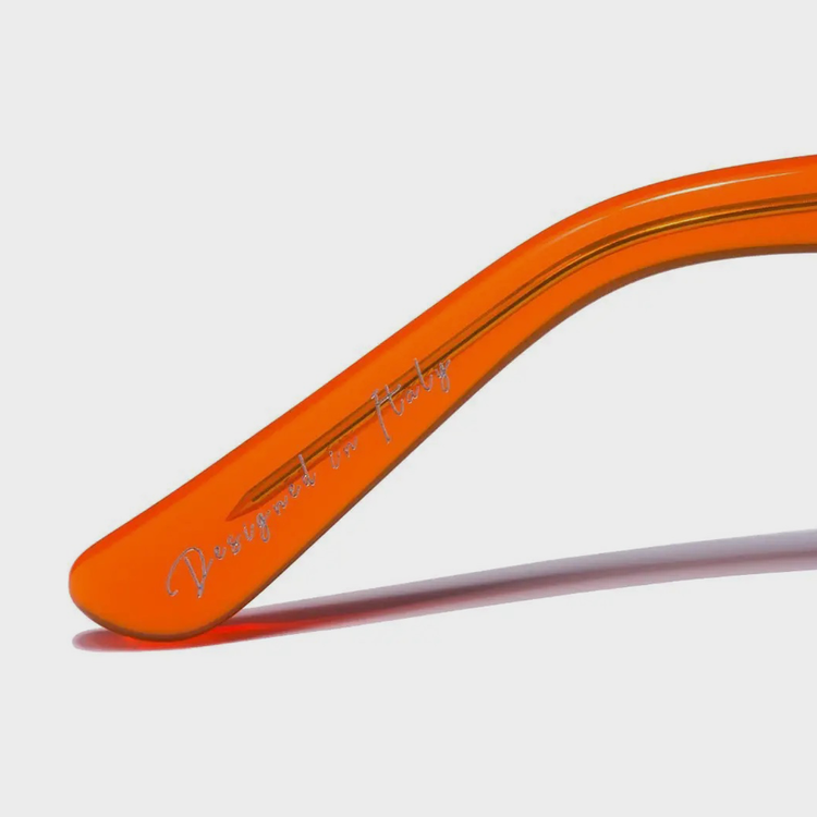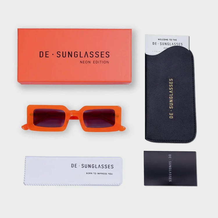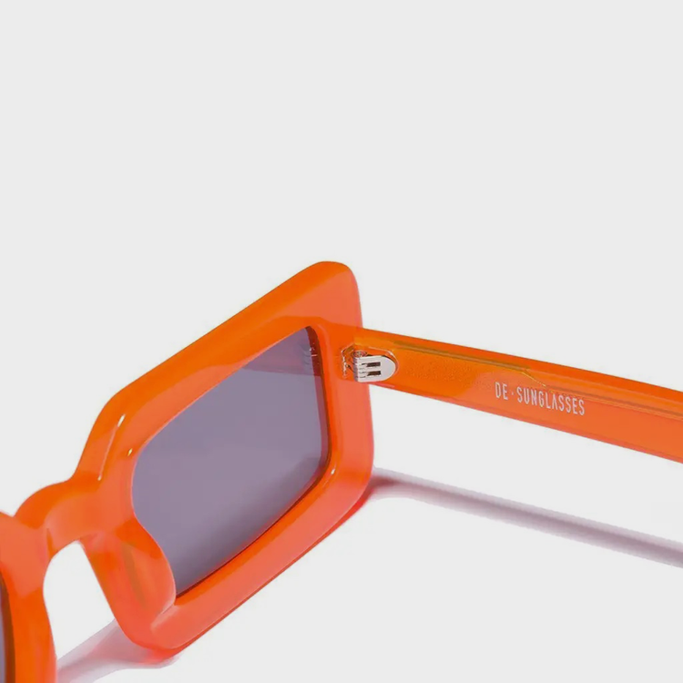 The square frames are made from Italian acetate and have Category 3(highest rated) CR-39 lenses. They also come with a luxurious box and cleaning cloth. Color: Neon Orange Dimensions: Width: 145mm. Nose Gap: 24mm. Height: 40mm.