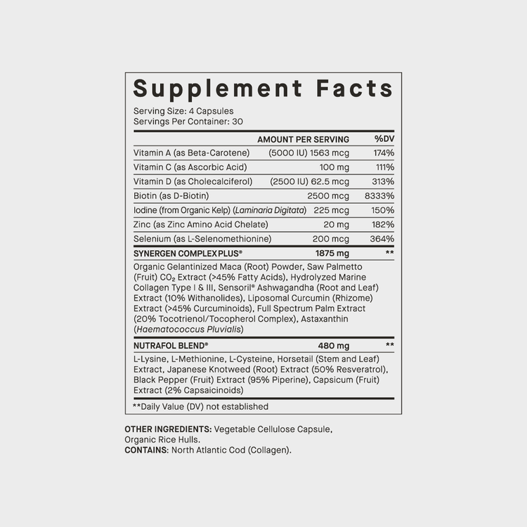 Improves hair growth, strength and thickness for women through menopause. With visible reduction in shedding after two months. Clinically effective nutraceutical. Natural and 100% drug free.