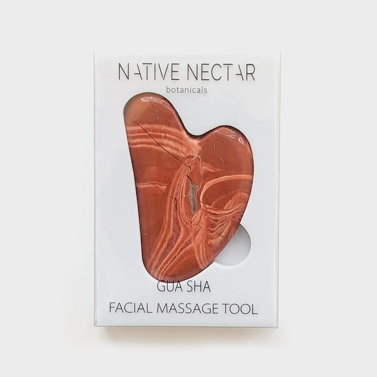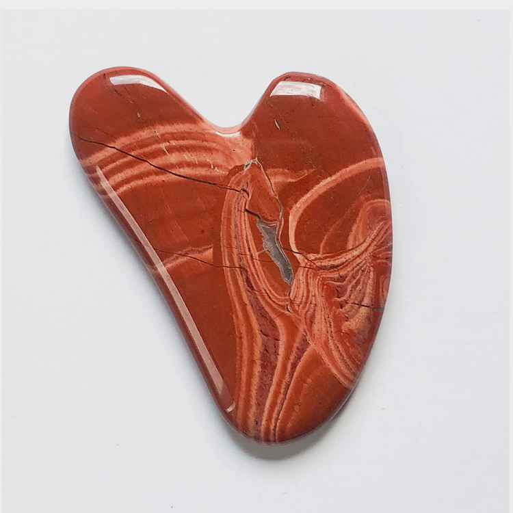 Elevate your self-care routine with this Red Jasper gua sha stone inspired by Chinese beauty rituals practiced since ancient times. Gua sha practice is used to help increase circulation, release muscle tension, smooth fine lines, and wrinkles, and decrease inflammation.