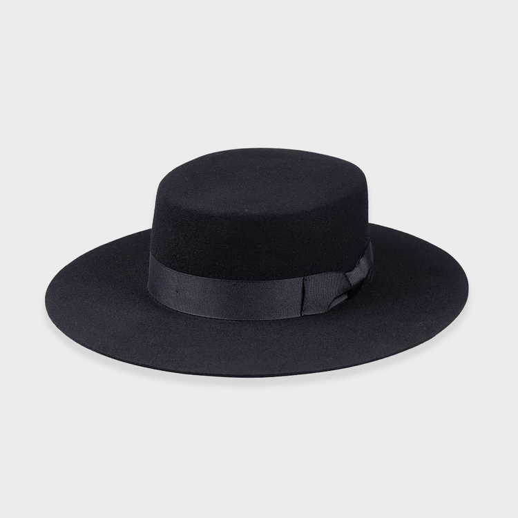 Tennessee is an imported bolero style wool felt hat from Friends Of Friends, a hat company from Encinitas, CA. It has a black grosgrain band, 100% wool felt brim and an interior headband.
